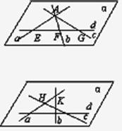 证明 1º若当四条直线中有三条相交于一点,不妨设a,b,c相交于一点 A ∴ 直线d和A确定一个平面α.