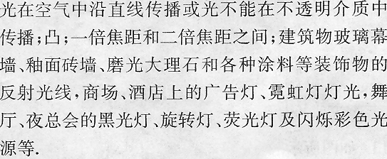 处.但天文学家反对激光传递活动,认为射向夜空的激光是光污染,请列举一个生活或生产中见到的光污染实例