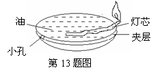 13.热传递 蒸发 比热大 在灯盏上加盖或用瓷质灯盏代替铜质灯盏(能减小油蒸发的意见均可)