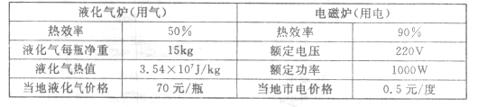 ( 3 )通过计算,你认为使用 炉具耗能费用更低? (提示:液化气炉热效率是指炉子有效利用的热量与燃料完全燃烧放出的热量之比;热效率是指电磁炉有效利用的热量与消耗的电能之比)