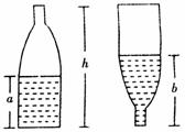 14. 如图所示,啤酒瓶子的高为h,瓶内啤酒面的高度为a,在盖子盖好的情况下将酒瓶倒置时瓶内酒面高度为b,则啤酒瓶的容积与瓶内酒的体积之比为 .