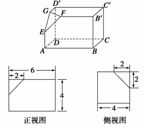 19. 如下的三个图中,上面的是一个长方体截去一个角所得多面体的直观图,它的正视图和侧视图在下面画出(单位:cm).