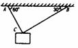 24.(6分)如右图所示,用轻绳AC和BC悬挂一重物,绳与水平天花板夹角分别为600和300,若物体重200N,求:绳AC绳和BC绳所受拉力的大小.