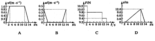 4.李丽同学在由静止开始向上运动的电梯里,将一测量加速度的小探头固定在质量为1 ㎏的手提包上,到达某一楼层停止,采集数据并分析处理后列表如下:(g取9.8m/s2)