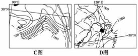 (2009·安徽淮北质检)读两组“同纬度地区等降水量线图(单位:mm)”,回答8-11题。