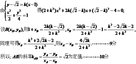 (2)若直线AB过椭圆的焦点F(0,c),(c为半焦距),求直线AB的斜率k的值;