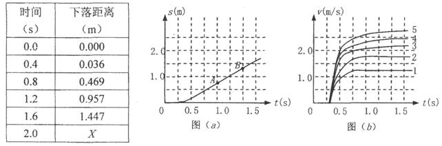 )是对应的位移-时间图线。然后将不同数量的“小纸杯”叠放在一起从空中下落,分别测出它们的速度-时间图线,如图(