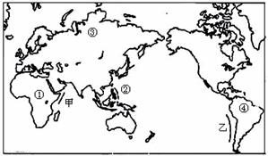 下图为“世界海陆轮廓图”,读图完成15-16题。