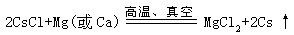 [铯]元素符号Cs,原子序数55,原子量132.9,外围电子层排布6s1,原子半径265.4皮米,离子半径167皮米,第一电离能371千焦/摩尔,电负性0.7,主要氧化数+1,银白色金属,质软而轻,密度1.8785克/厘米3,硬度0.2,电导性4.8。在自然界中铯是碱金属里最活泼的,能跟氧剧烈反应生成多种氧化物的混和物,在空气中常温下铷能自燃,生成红黄色晶体超氧化铯CsO2,铯不跟氮反应,可在高温下跟氢气化合生成较稳定的氢化物CsH,跟卤素能剧烈反应生成稳定的卤化物。不仅在常温下,甚至温度低到-116℃时铯跟水都可发生爆炸性的反应,生成氢氧化铯和氢气。氧化铯跟水反应时燃烧甚至爆炸,生成氢氧化铯。铯对光特别灵敏,光照射下,铯容易释放出电子,因此,铯单质主要用于制造光电管、摄谱仪、闪烁计数器、电子管、红外信号灯、以及光学自动控制仪器,还用于电子管的吸氧剂。医疗中用铯盐做药物。同位素铯-137,可用来治疗癌症。1860年德国本生和基尔霍夫在对矿泉的提取物进行光谱实验时,发现了铯,并根据谱线的颜色命名为铯(原意是天蓝)。铯在自然界分布少而分散,主要有氯化铯存在于海水或光卤石中,主要矿物有铯榴石、绿柱石等。工业上用镁或钙在700-800℃和真空条件下还原氯化铯制取铯:
