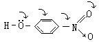 羟基中的氧原子上的负电荷能分散到包括硝基在内的共轭体系中,使得羟基的H-O键易断裂,其酸性比苯酚强得多。如2,4,6-三硝基苯酚,由于苯环上引入了3个硝基,使其酸性与无机强酸相近。取代基对有机物的影响往往同时具有共轭效应和诱导效应,这两种效应的方向可以一致,也可以不一致。如对氯苯酚中氯原子的诱导效应和把p电子云分散到整个共轭体系中的共轭效应在方向上是不一致的。