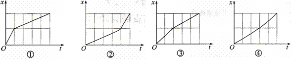 甲、乙二人同时从A地赶往B地,甲先骑自行车到中点后改为跑步,而乙则是先跑步,到中点后改为骑自行车,最后两人同时到达B地;又知甲骑自行车比乙骑自行车的速度快.并且二人骑车速度均比跑步速度快.若某人离开A地的距离x与所用时间t的函数关系用函数图象表示,则在图所示的四个函数图象中,甲、乙二人的图象只可能是( )
