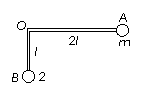 质量不计的直角形支架两端分别连接质量为m和2m的小球A和B。支架的两直角边长度分别为2l和l,支架可绕固定轴O在竖直平面内无摩擦转动,如图所示。开始时OA边处于水平位置,由静止释放,则( )