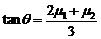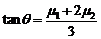 如图所示,固定斜面倾角为θ,整个斜面分为AB、BC两段,且2AB=BC.小物块P(可视为质点)与AB、BC两段斜面之间的动摩擦因数分别为μ1、μ2.已知P由静止开始从A点释放,恰好能滑动到C点而停下,那么θ、μ1、μ2间应满足的关系是