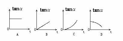物体做平抛运动时,从抛出点开始,物体在时间t内,位移的方向和水平方向的夹角α的正切tanα的值随时间t变化的图象正确的是 ( B )