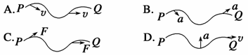 1.质点在一平面内沿曲线由P运动到Q,如果用v、a、F分别表示质点运动过程中的速度、加速度和受到的合外力,下列图象可能正确的是 ( )