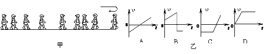 如图甲所示,某一同学沿一直线行走,现用频闪照相机记录了他行走过程中连续9个位置的图片,仔细观察图片,指出在图乙中能接近真实反映该同学运动的v-t图象( )![]()