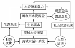 [解析] 结合流程图可以判断区域水资源承载能力的大小随水资源开发阶段和条件不同而变化。