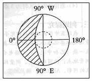21.右图是极点为中心的俯视图,阴影部分表示夜半球,据此回答:(每空2分,共12分)