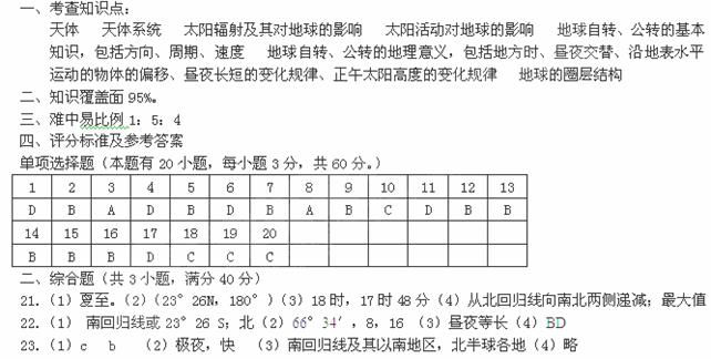 汾阳中学高一地理月考试题
