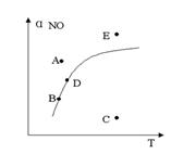 NO的转化率与温度的关系,图上标有A、B、C、D、E点,