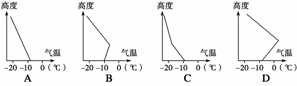15.下面四幅图是近地面气温垂直分布图,有利于冻雨形成的是 ( )