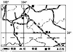 24.图中B市是在开发某种自然资源的基础上发展起来的,该种资源是