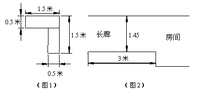(本题满分4分)如图(1)是某立式家具(角书橱)的横断面,请你设计一个方案(角书橱高2米,房间高3米,所以不必从高度方面考虑方案的设计),按照你设计的方案,可使该家具通过图(2)中的长廊搬入房间,在图(2)中把你设计的方案画成草图,并说明按此方案可把家具搬入房间的理由.(注:搬运过程中不准拆卸家具,不准损坏墙壁,此房间无门)