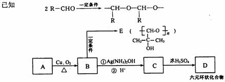 。A显然为酯,水解时生成了醇B和酸C。B中只有一个甲基,相对分子质量为60,60-15-17=28,则为两上亚甲基,所以B的结构式为CH3CH2CH2OH,即1-丙醇。它在浓硫酸作用下,发生消去反应,可生成CH3CH=CH2,双键打开则形成聚合物,其键节为