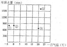 右图中数学代号表示高雄、开普敦、淮北、芝加哥4个城市。根据图示资料,判断4-6题。
