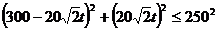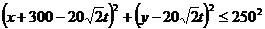 风圈内的界线为以B为圆心,半径为250的圈内,若t