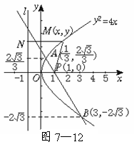 [范例4]已知动圆过定点P(1,0),且与定直线l:x=-1相切,点C在l上.