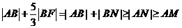 为动点B到左准线的距离。故本题可化为,在椭圆上求一点B,使得它到A点和左准线的距离之和最小,过点B作l的垂线,垂点为N,过A作此准线的垂线,垂点为M,由椭圆定义