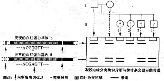 (1)从图中可见,该基因突变是由于 引起的。巧合的是,这个位点的突变使得原来正常基因的限制酶切割位点丢失。正常基因该区域上有3个酶切位点,突变基因上只有
