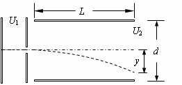 起的偏转距离”来描述示波管的灵敏度,即y/U2(该比值越大则灵敏度越高),则下列