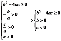 故方程ax2+bx+c=0(a<0)有两个正根的充要条件是b2≥4ac且b>0, c<0