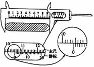 游标上有20个小的等分刻度,用它测量一工件长度,