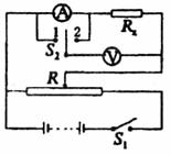 (1)实验室现备有电流表A一只,已知阻值的电阻R0一只,单刀单掷电键一个K1(作为电路总电键用),单刀双掷电键一个K2,滑动变阻器R一个,电源ε一个及导线若干。请利用以上器材设计一电路测量一个未知电阻Rx的阻值,在以下虚线框A中画出你设计的电路图,并简述测量的步骤。
