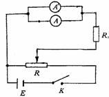 电池E 标准电流表A1 标准电流表A2 定值电阻R1 滑动变阻器R 电键K、导线若干 |