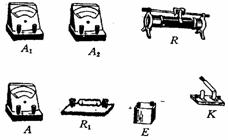 电流表 电流表 电流表 电流表 电阻箱 滑动变阻器 电池组 电键及导线若干 |