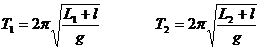 (3分) 摆线长为L2时,测得周期为T2