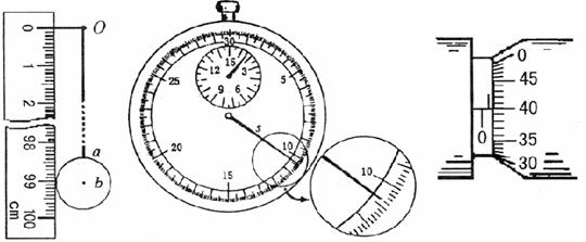 ①在一次用单摆测定加速度的实验中,图A的O点是摆线的悬挂点,a、b点分别是球的上沿和球心,摆长L= m,图B的测量周期用的秒表,长针转一圈的时间为30s,表盘上部的小圆共15大格,每一大格为1min,该单摆摆动n=50次时,长、短针位置如图所示,所用时间t= s.用以上直接测量的物理量的英文符号表示重力加速度的计算式为g= (不必代入具体数值).
