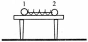 (2)(8分)把两个大小相同、质量不等的金属球用细线连接,中间夹一被压缩了的轻弹簧,置于光滑的水平桌面上,如图所示.烧断细线,观察两球的运动情况,进行必要的测量,验证物体间相互作用时动量守恒.