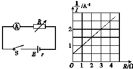 3.利用如图甲所示的电路测量电池组的电动势E和内阻r.根据实验数据绘出-R图线如图乙所示,其中R为电阻箱的示数,I为电流表的示数,不计电流表的内阻,由此可以得到E= V,r= Ω.
