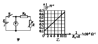 4.现有一种特殊的电池,它的电动势E约为9 V,允许通过的最大电流约为50 mA.为了测定这个电池的电动势和内阻,某同学利用图甲所示的电路进行实验.图中电压表的内阻很大,对电路的影响可不考虑;R为电阻箱,阻值范围为0-9999 Ω;R0是定值电阻,起保护电路的作用.