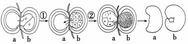 24.细胞核具有什么功能?科学家通过下列实验(见下图)进行探究:①用头发将蝾螈的受精卵横缢为有核和无核的两半,中间只是很少的细胞质相连,结果无核的一半(a)停止分裂,有核的一半(b)能继续分裂;②b部分分裂到16-32个细胞时,将一个细胞核挤入到不能分裂的a部分,结果a部分开始分裂、分化,进而发育成胚胎。下列叙述中,不正确的是 ( )