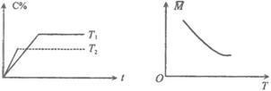 pC(气)(焓变为ΔH),其温度T、时间t与生成物C的体积百分数C%、平衡混合气体的平均相对分子质量M的关系如下图所示,下列结论正确的是
