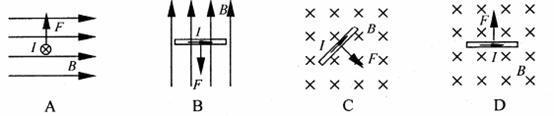如图所示,磁场B方向、通电直导线中电流I的方向,以及通电直导线所受磁场力F的方向,其中正确的是