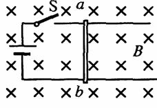 如图所示,在同一水平面上的两金属导轨,间距L=O.2m,处在竖直向下的匀强磁场中,磁感应强度B=1T,导体棒ab垂直导轨放置,棒长等于导轨间距,其电阻R=6Ω.闭合开关,当通过导体棒ab的电流I=O.5A时,求:
