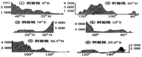 31.(10分)下图分别是某国(地区)沿经线或纬线的地形剖面图,读图完成下列问题