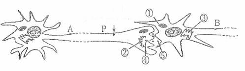 B.释放的⑤不可能引起B点所在的细胞抑制